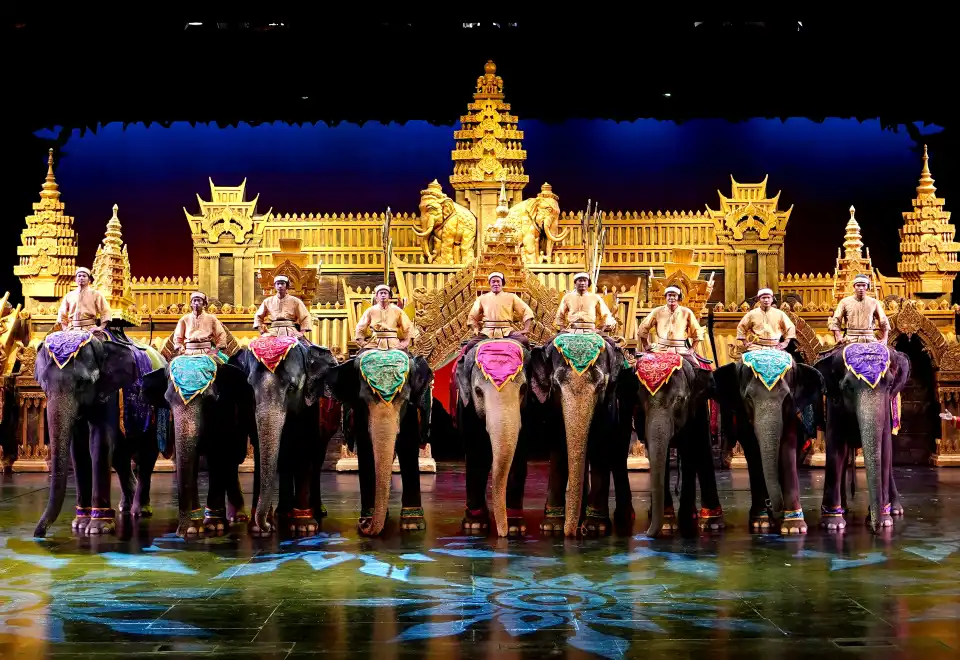 منتزه ترفيهي ضخم يقدم عروضًا ثقافية واستعراضات راقصة تحكي تاريخ تايلاند.