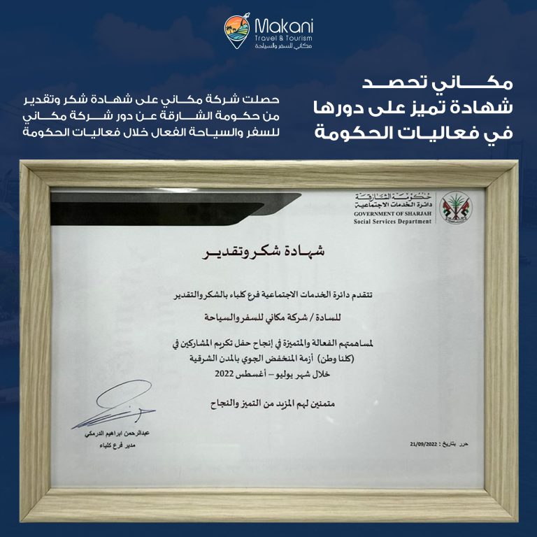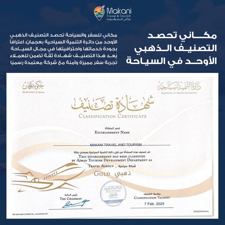 وكالة السفر الوحيدة الحاصلة على تصنيف ذهبي في الإمارة