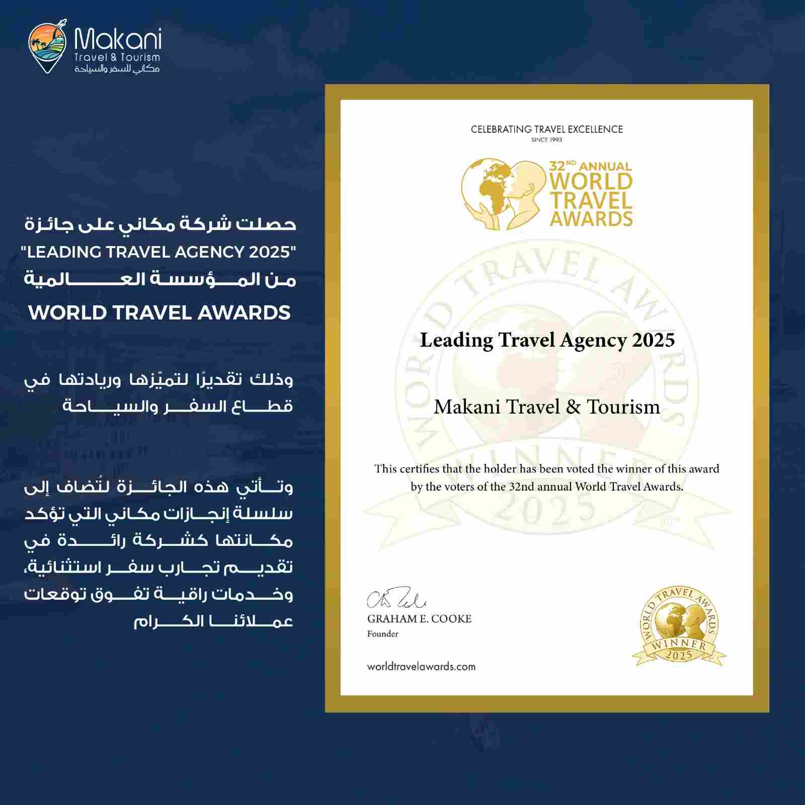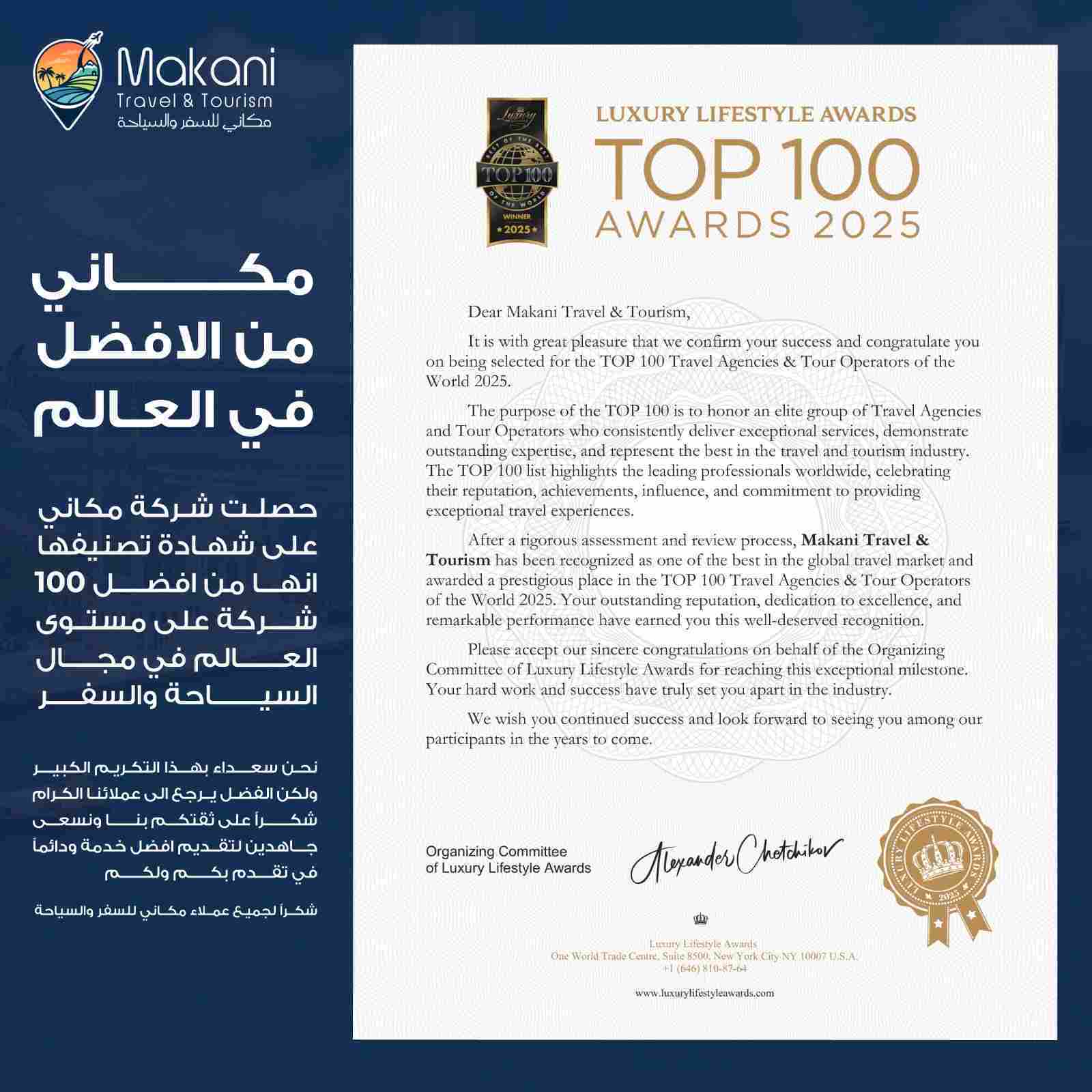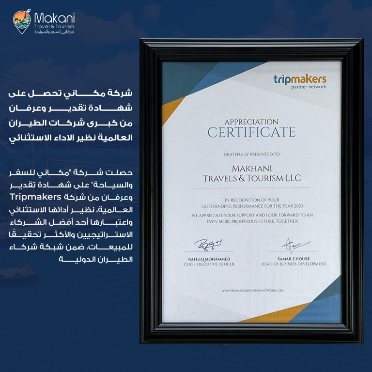 بفضل خبرتها التي تزيد عن عقدين من الزمن في قطاع السفر والسياحة، اكتسبت شركة ماكاني سمعة طيبة في مجال التميز والثقة ورضا العملاء في دولة الإمارات العربية المتحدة وخارجها.